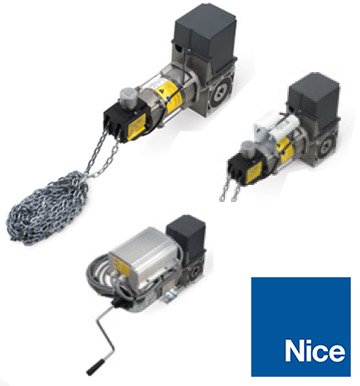 Moto-redutor electromecânico para portões seccionais. Versões para 230 Vac monofásicos e 230/400 Vac trifásicos, com novos fins-de-curso mecânicos ou electrónicos.